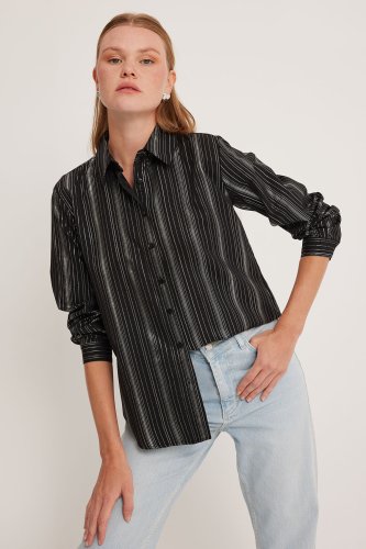 Siyah Çizgili Varak Desenli Gömlek 20253